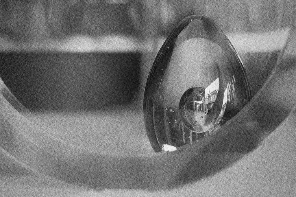 Clearly this egg was a natural for a still life. It was located in a store that seems to specialize in kitschy 60’s furniture and décor. The color it reflected was nice but I liked the simplicity of the black and white, which eliminated a few distracting elements. I added a little grain to soften the mood a little.
