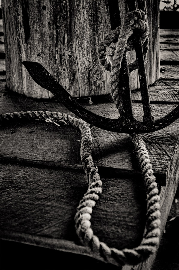 These are the questions I asked myself when working on this image. Believe or not (knot?), I like it. An old anchor, textured wood and rope, what’s not to like? I do like the lines of the rope taking you to the anchor and back.