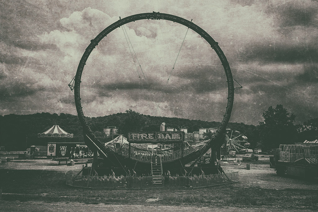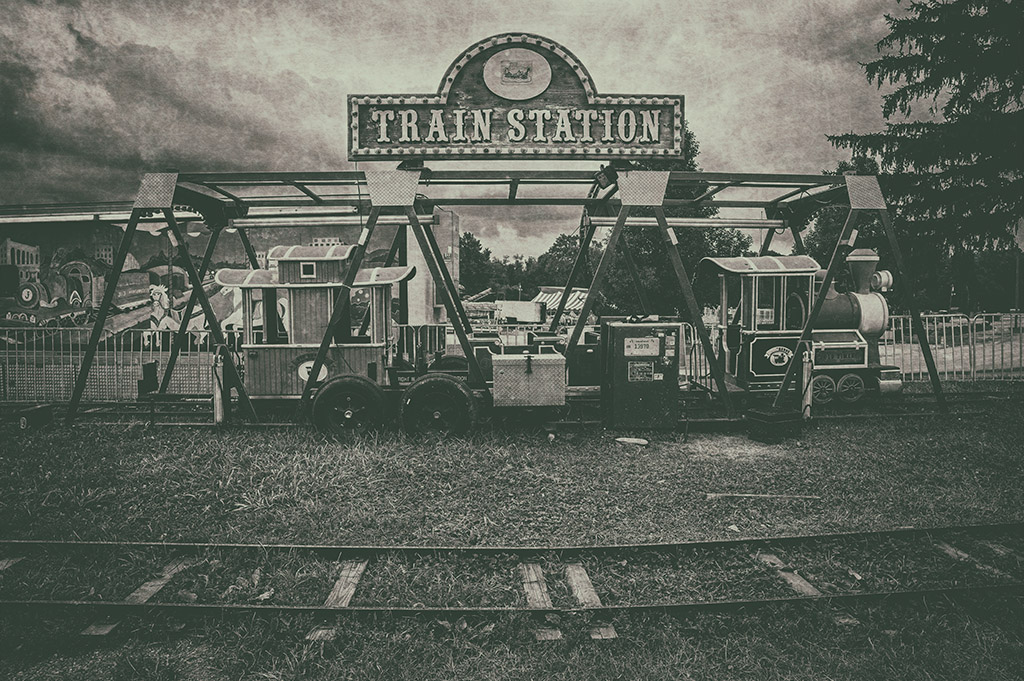Here are a few more shots from my “day after” shots of the county fair. I was going to post some full color shots but decided to stick with black and white since that seems to be where my head is at these days. I had some nice straight B&W images ready when my wife thought the train station shot would look good as a textured image. I’m always game to her ideas so I went with a textured vintage look and , I have to say, I liked the results. So much I went ahead and did a few more in the same vein.