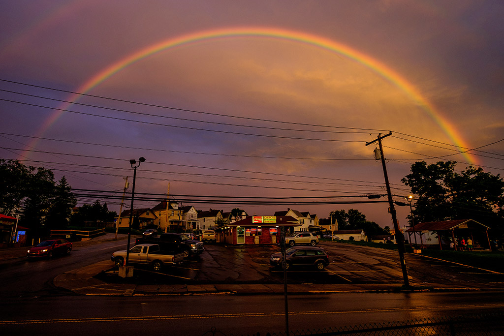 No, I’m not asking where I should go on vacation, I’m wondering which one would have made a better foreground for a dramatic rainbow photo. But. since I was around neither, I have a nice rainbow over a pizza shop photo! They always say the best camera is the one you have with you, so I’m going to say the best foreground is the one you have in front of you!