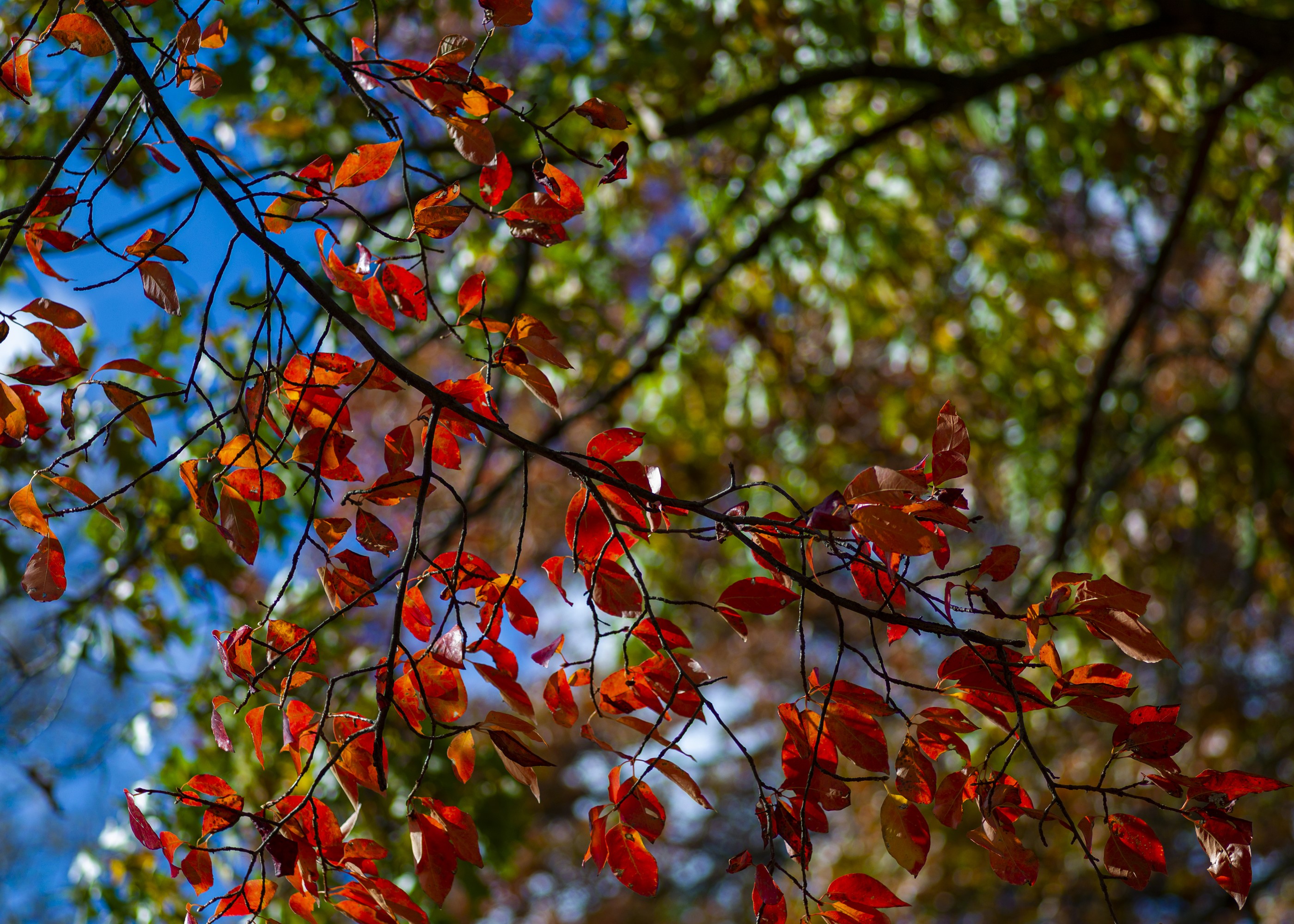 I always like to shoot some fall color photos every year and decided to try so again. Mind you I do not live in an area of spectacular scenery so my autumn photos are not that awesome. I just shoot whatever catches my eye when I’m out. I did decide to try to shoot as much as possible with the Leica simple because I like the look of the photos it captures. I could easily shoot with mu Fujifilm and take advantage of the telephoto or close focus abilities but I like the idea of limitations that the Leica provides. Focusing with the rangefinder can get a little tough when looking at the repeating patterns of nature. It can be a bit disorienting when looking through the viewfinder and think you have the subject lined up in the rangefinder window only to find out not. I have to actually crouch down for low angle shots and don’t have the luxury of using the LCD screen for focusing and composition. Plus I cannot focus any closer the 0.7m, so leaf details are out also.