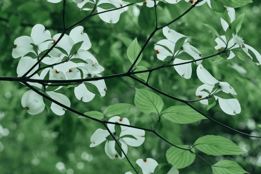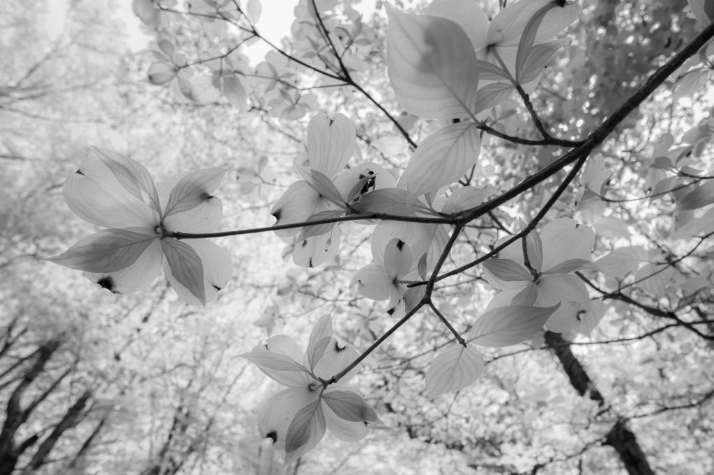 So I drove through the park loop and thought of waiting until at least the people left the area. As I drove down a road I noticed some dogwood trees with white blossoms down in a ravine. There were no people around that area, so I parked my car and thought I would have a look. At least it would give me something to do, I figured, until I could check on my planned area later.