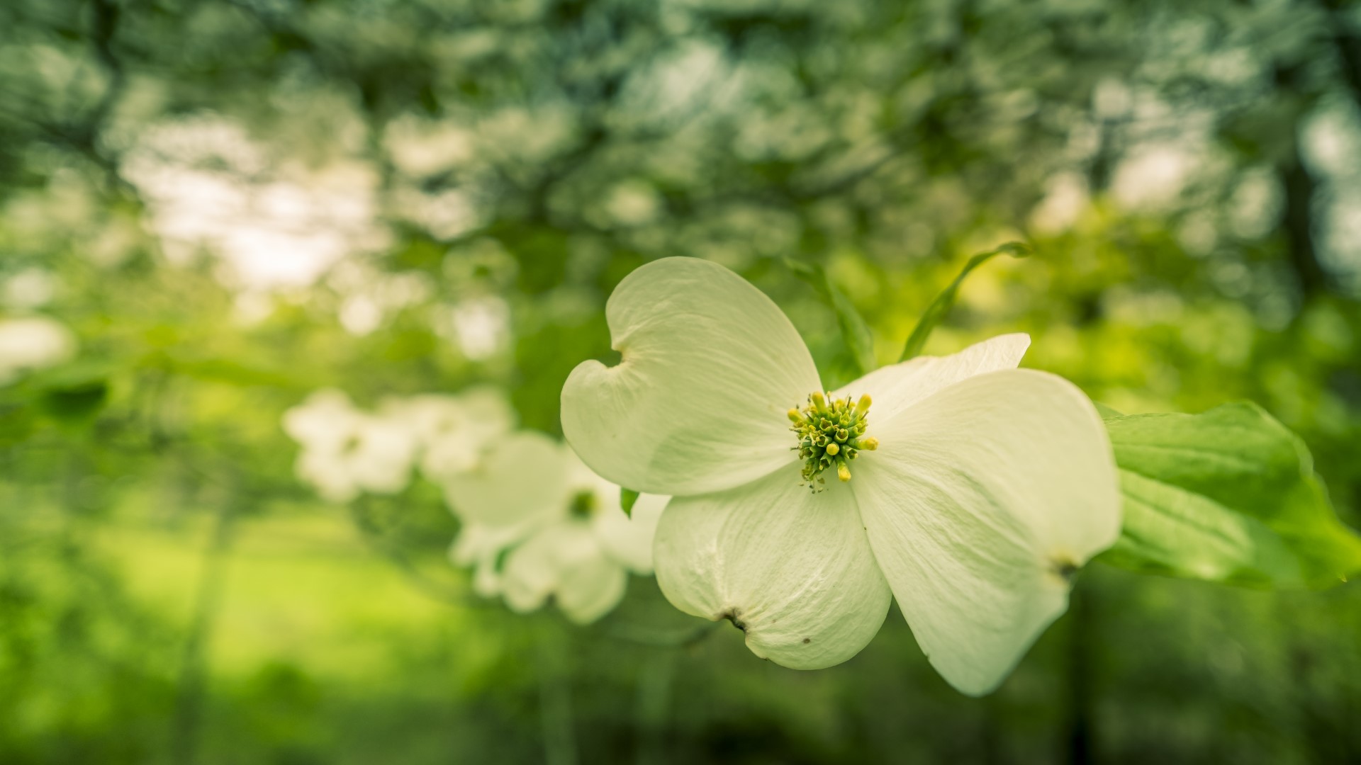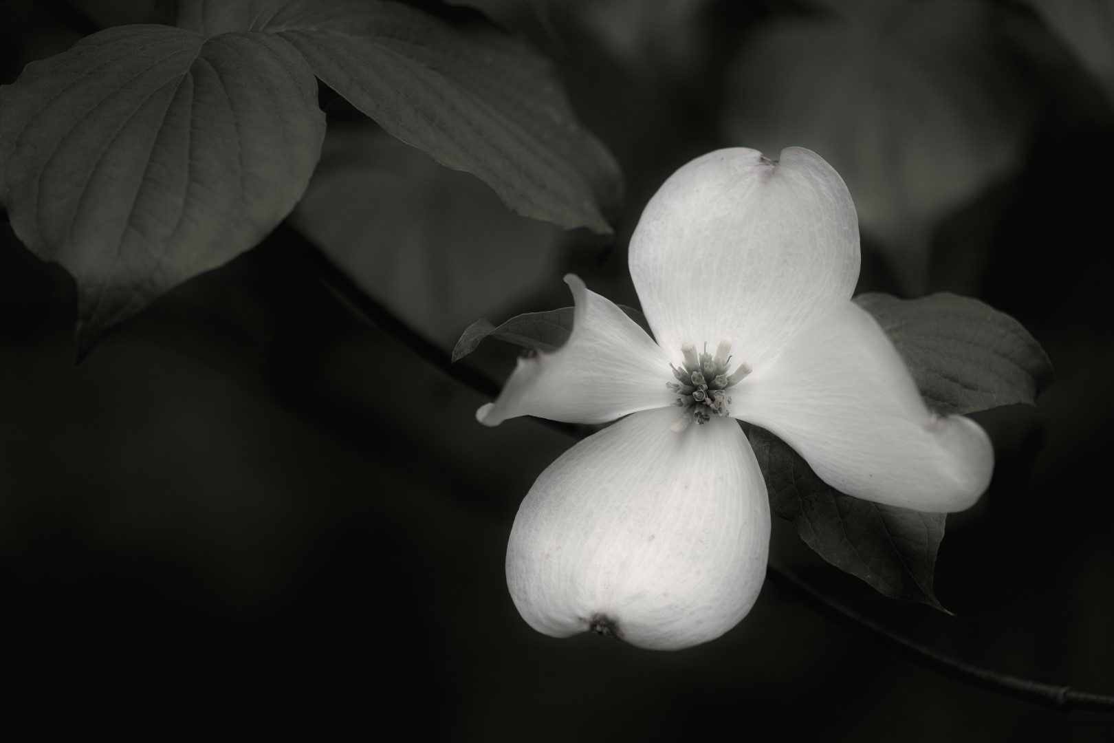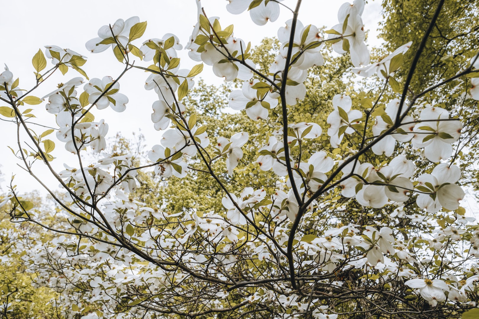 So I drove through the park loop and thought of waiting until at least the people left the area. As I drove down a road I noticed some dogwood trees with white blossoms down in a ravine. There were no people around that area, so I parked my car and thought I would have a look. At least it would give me something to do, I figured, until I could check on my planned area later.