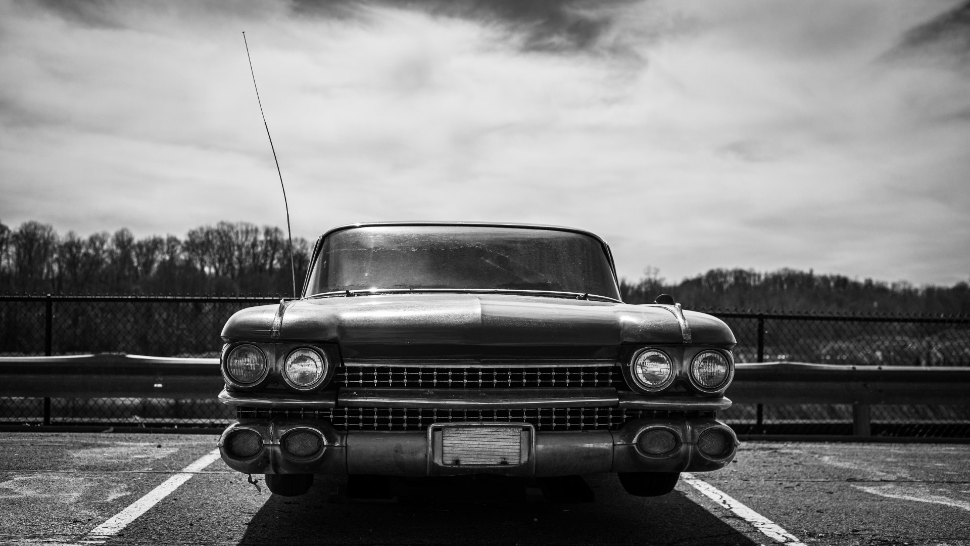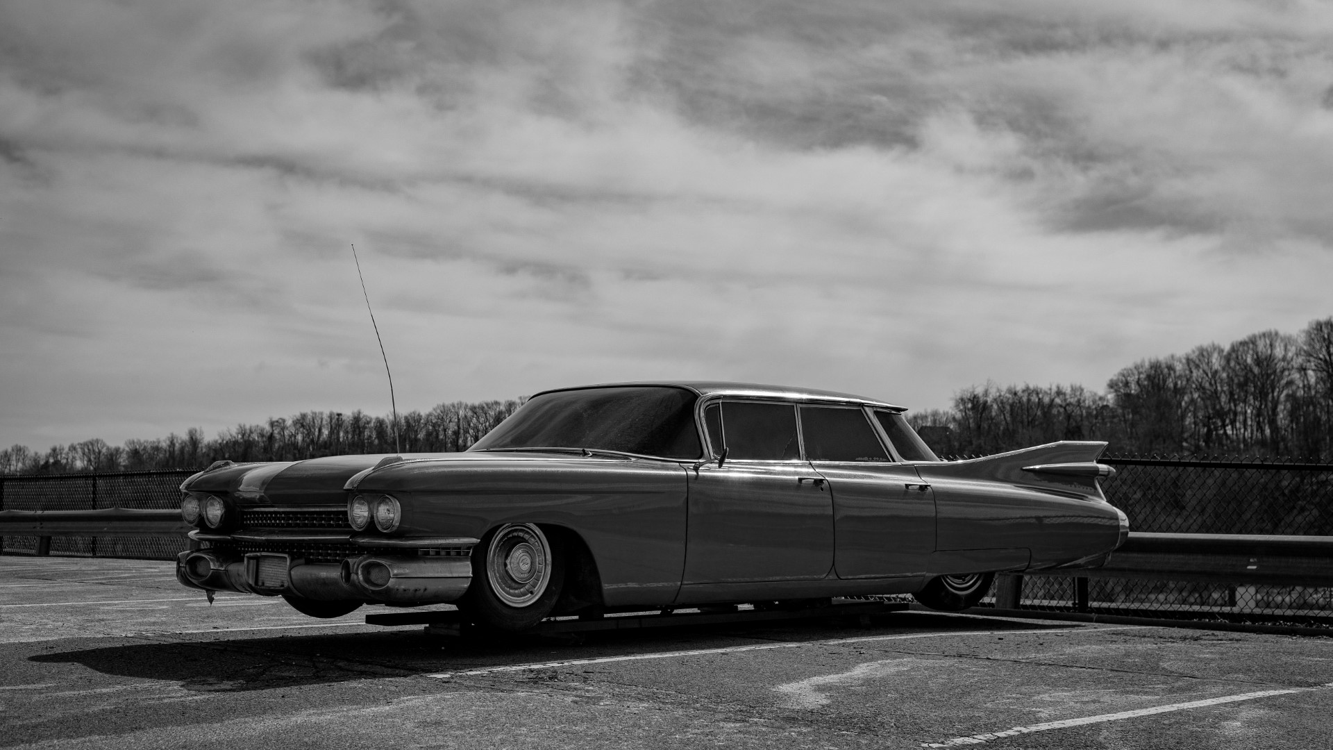 My wife and I were out running some errands and dinner. While driving through a shopping center parking lot, my wife spotted an old car at the edge of the lot. when I looked i saw this massive old Cadillac and had to check it out. It turned out to be a Cadillac that a restaurant in the shopping center previously had hanging over it’s entrance. Why it was taken down I don’t know but the car was sitting on some kind of blocks. They did take the time to park it well centered in it’s space though. I had my Leica M9 with me and grabbed a few shots. The afternoon light was a bit harsh so I shot what I could realizing the conditions were not ideal but the car may not be there much longer.