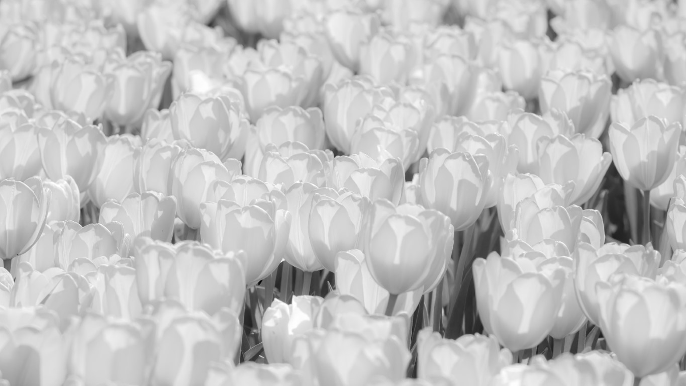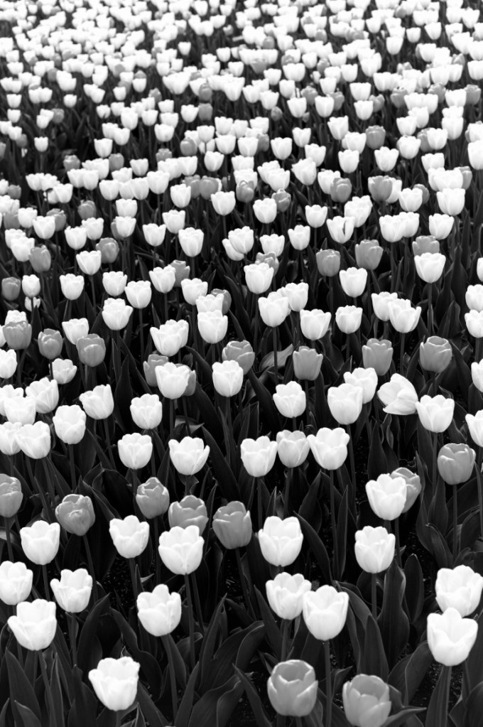 Tulips are a spring flower that always brings color to mind. Indeed these flowers at a nearby park were colorful but, with the exception of some macro shots in the past, I don’t believe I ever looked at them in black and white.
